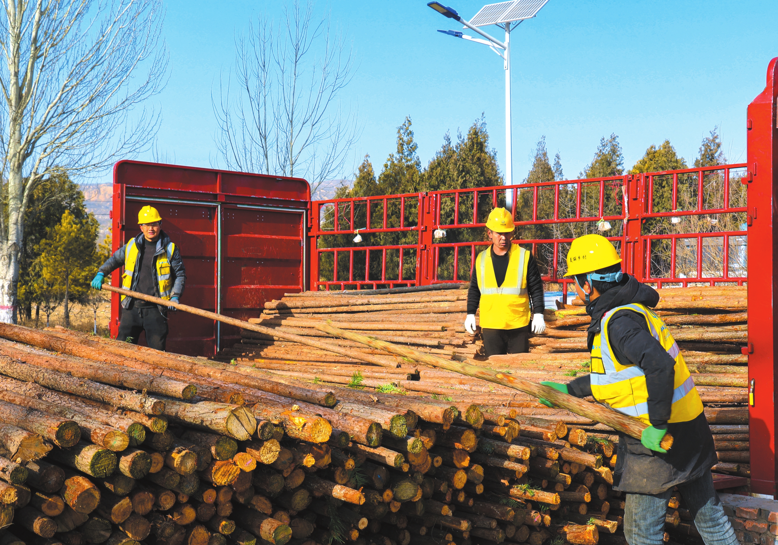 河曲縣巡鎮(zhèn)鎮(zhèn)陽(yáng)面村驛站廣場(chǎng)上工人們正為安...