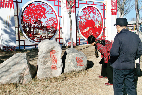 2月16日,原平市民正在觀賞范亭文體景觀文化墻。該市著力打造文化強(qiáng)市,利用城鄉(xiāng)墻體繪制人文地理、名勝景觀、歷史古跡等,傳播文化正能量,營(yíng)造濃厚的文化氛圍,這也成為城鄉(xiāng)一道靚麗風(fēng)景。(褚震 攝)