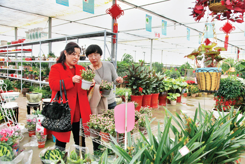 2月16日,市民在忻州城區(qū)七一南路的“陳紅花卉”批發(fā)市場(chǎng)選購花卉?!岸拘袆?dòng)”開展以來,忻府區(qū)發(fā)揮區(qū)位優(yōu)勢(shì),大力扶持發(fā)展特色觀賞農(nóng)業(yè),為農(nóng)民增收挖掘新的經(jīng)濟(jì)增長(zhǎng)點(diǎn)。春節(jié)期間,一批像“陳紅花卉”大棚一樣的花卉種植戶獲得了較高的經(jīng)濟(jì)收入。(侯睿 攝)