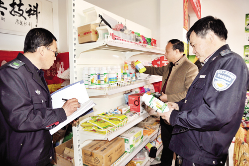 連日來,代縣農(nóng)業(yè)綜合執(zhí)法大隊(duì)開展農(nóng)資打假專項(xiàng)整治行動(dòng),對(duì)全縣4個(gè)農(nóng)資市場和30個(gè)農(nóng)資經(jīng)營門店進(jìn)行了地毯式突擊檢查,圖為對(duì)農(nóng)資農(nóng)藥門店進(jìn)行檢查。(石俊文 攝)