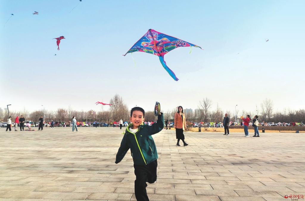 春天來(lái)了,3月24日,小朋友在市五館一院廣場(chǎng)上放飛風(fēng)箏,享受戶(hù)外運(yùn)動(dòng)的快樂(lè)。(宮清華 攝)