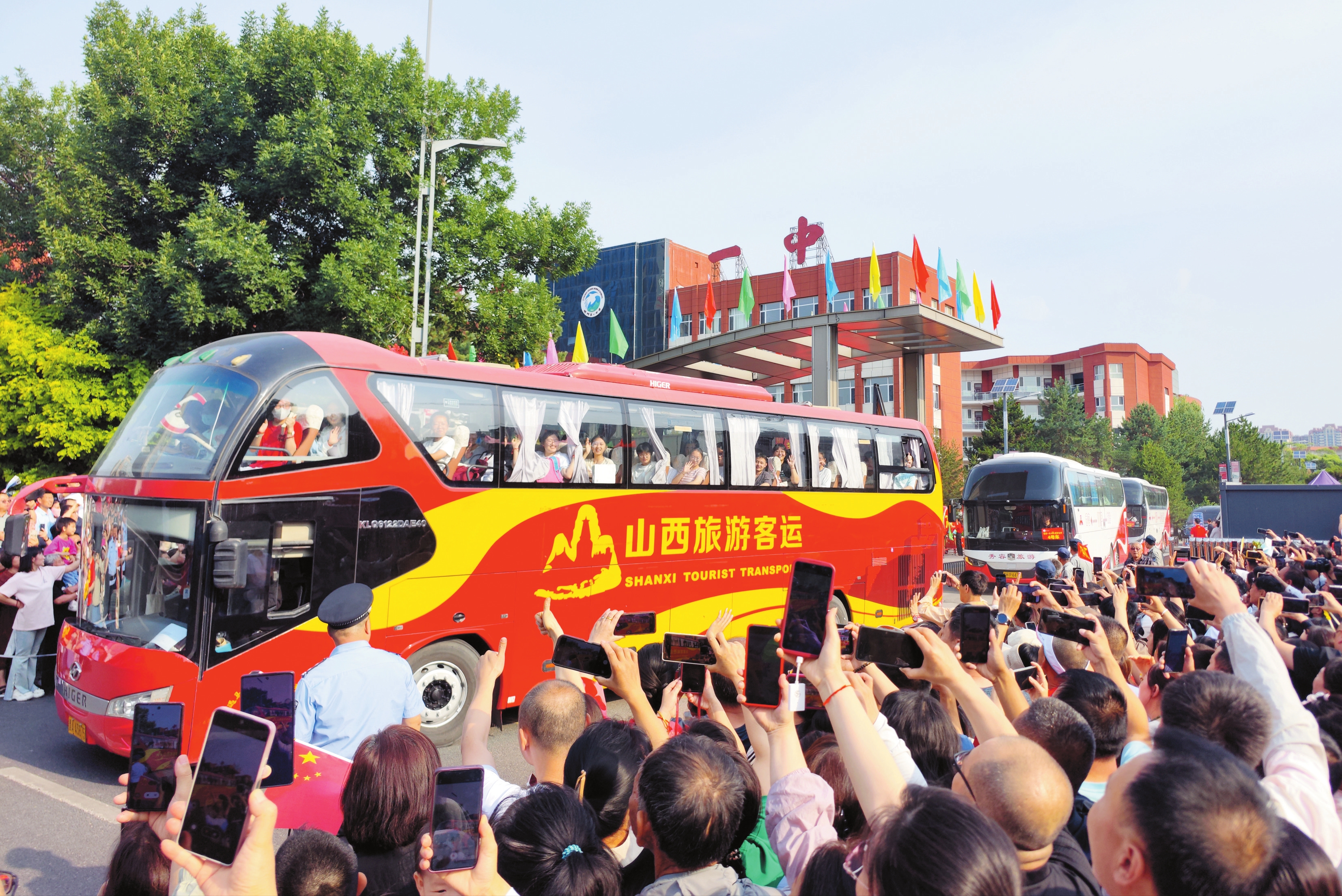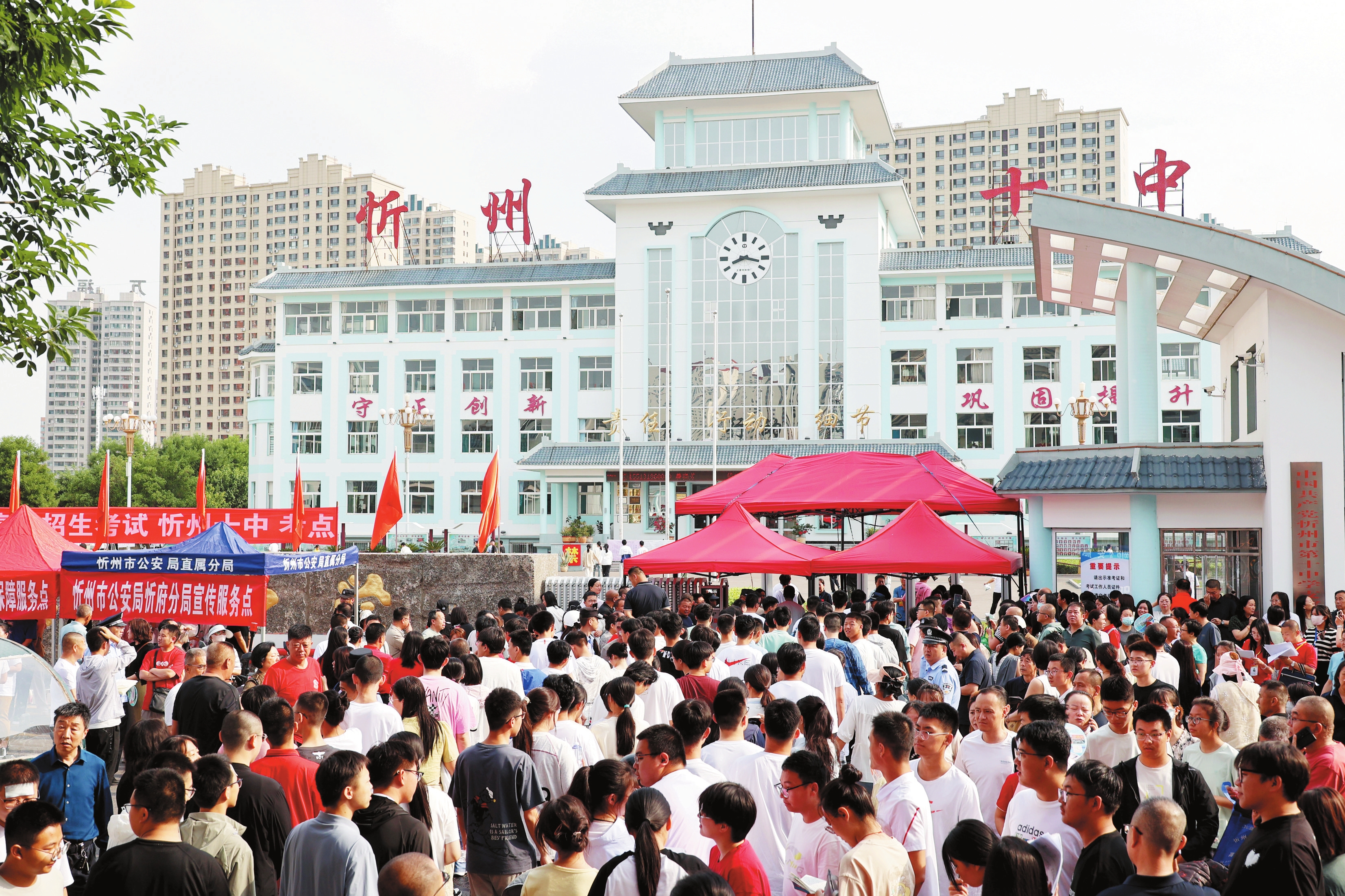 圖為忻州二中考點(diǎn),家長為考生送上美好祝福。趙菁攝