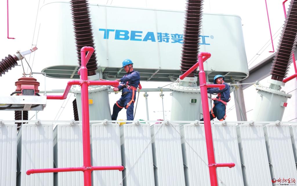 7月1日,隨著兩臺主變壓器并網(wǎng)運行,位于代縣聶營鎮(zhèn)西高泉村的220千伏顯旺變電站正式投運。圖為技術(shù)人員進行投運前的最后檢驗。 (