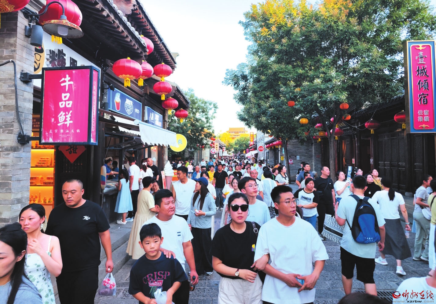 眼下正值暑期旅游旺季,文旅市場(chǎng)消費(fèi)旺盛。圖為游客在忻州古城景區(qū)游玩。 (