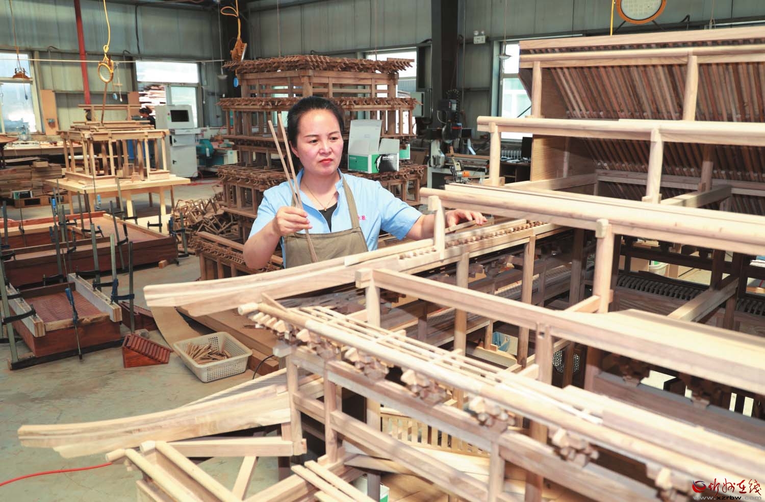 7月21日,在五臺(tái)現(xiàn)代農(nóng)業(yè)產(chǎn)業(yè)園區(qū)森雅軒古典家俱有限公司的加工車(chē)間,工人正在制作工藝品。森雅軒采用傳統(tǒng)工藝制作,以古典家具、全屋定制、工藝品、老榆木系列產(chǎn)品四大生產(chǎn)板塊為主。 (記者 張存良攝)