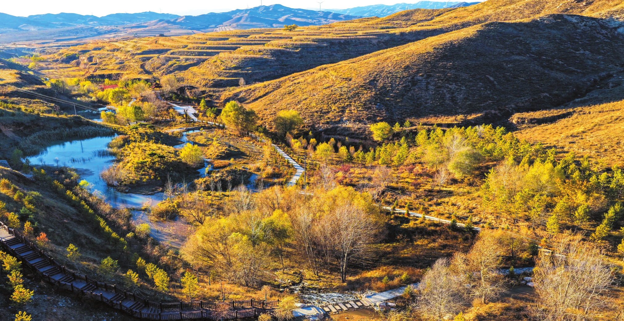 深秋時(shí)節(jié),滹沱河源頭層林盡染,碧水蜿蜒,在山川丘陵間勾勒出一幅靜謐而絢爛的生態(tài)畫卷。(