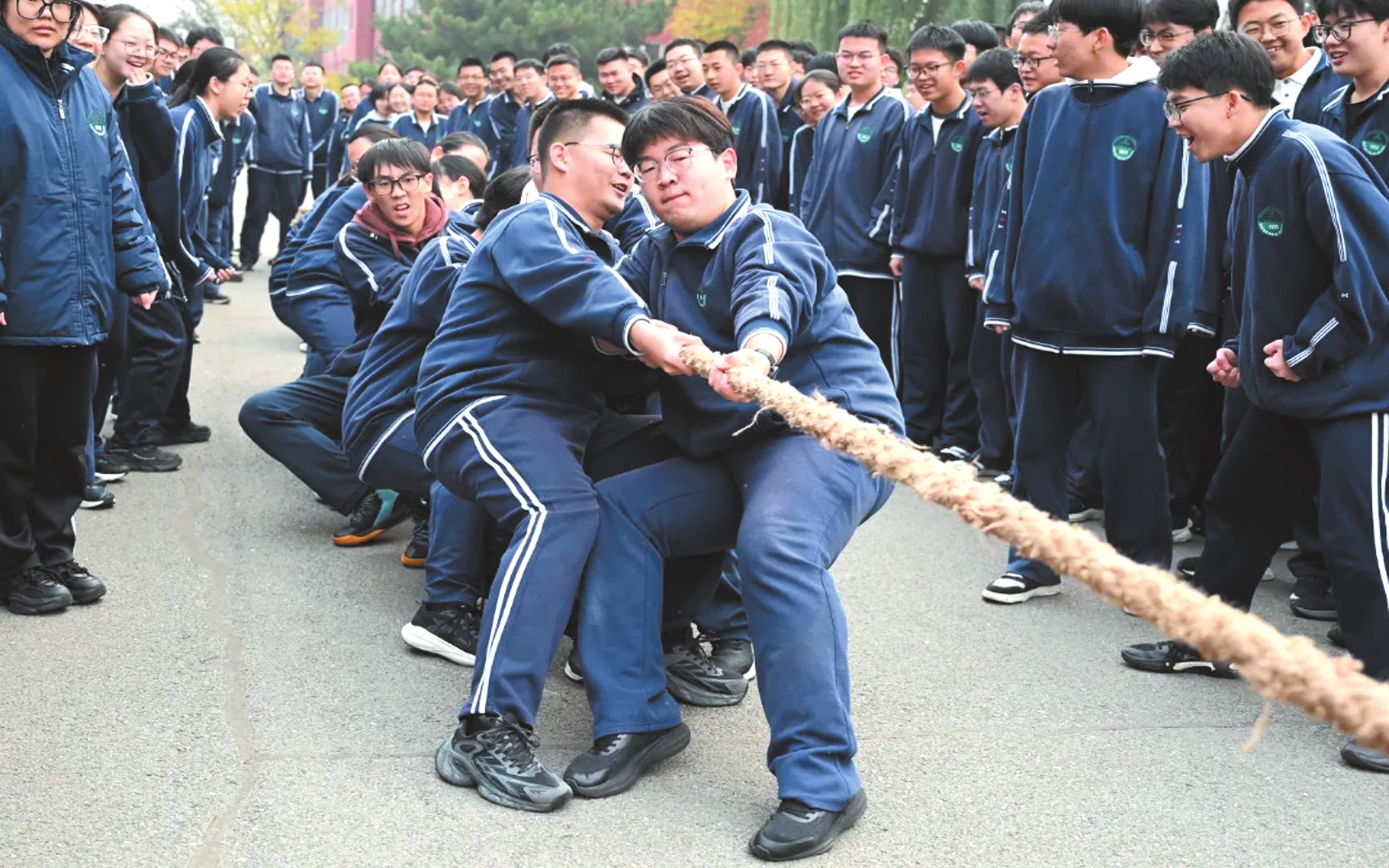 近日,忻州實(shí)驗(yàn)中學(xué)第22屆校園文化藝術(shù)體育節(jié)拔河比賽舉行。比賽哨聲一響,賽場瞬間沸騰。參賽隊(duì)員們緊握長繩,雙腳蹬地,身體后傾,每一個動作都凝聚著集體的力量與智慧。老師們化身為全情投入的啦啦隊(duì)長,揮動雙臂,聲嘶力竭地為隊(duì)員們指揮節(jié)奏;各班同學(xué)則自發(fā)組成陣容強(qiáng)大后援團(tuán),將現(xiàn)場氛圍一次次推向高潮。 (記者 馮偉倫攝)