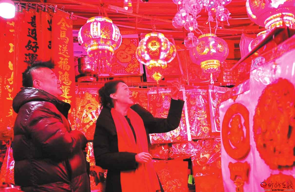 新春將近,寧武縣消費(fèi)市場年味濃郁,紅燈籠作為迎新春的經(jīng)典元素,成為年貨市場的“主角”。圖為市民正在采購燈籠。(吳光宇攝