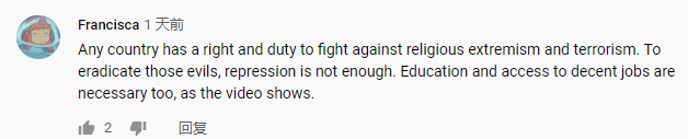 “任何國家都有權(quán)利和義務(wù)打擊宗教極端主義和恐怖主義。要根除這些邪惡……教育和獲得體面工作的機會也是必要的?!苯眨幻M饩W(wǎng)友Francisca在看完中央廣播電視總臺旗下CGTN播出的《巍巍天山——中國新疆反恐記憶》紀(jì)錄片后這樣評價。