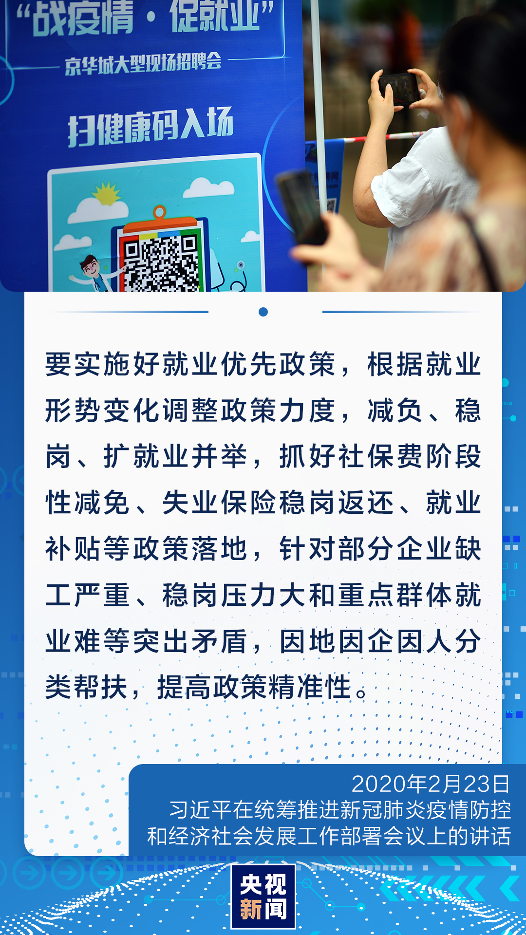 以保促穩(wěn),穩(wěn)中求進(jìn)。 5月23日,習(xí)近平在看望參加政協(xié)會(huì)議的經(jīng)濟(jì)界委員時(shí)強(qiáng)調(diào),做好“六穩(wěn)”工作、落實(shí)“六?!比蝿?wù)至關(guān)重要?!傲!笔俏覀儜?yīng)對各種風(fēng)險(xiǎn)挑戰(zhàn)的重要保證。 就業(yè)是最大的民生,“六穩(wěn)”工作、“六保”任務(wù),就業(yè)都擺在首位。 習(xí)近平總書記指出要堅(jiān)持就業(yè)優(yōu)先戰(zhàn)略,把解決人民群眾就業(yè)問題放在更加突出的位置,努力創(chuàng)造更多就業(yè)崗位?!按蠹矣惺杖?,家里就有了保障。” 簡化創(chuàng)業(yè)擔(dān)保貸款辦理手續(xù);及時(shí)發(fā)放失業(yè)保險(xiǎn)穩(wěn)崗返還補(bǔ)貼;下放人才引進(jìn)事權(quán)……目前,各地正在著力穩(wěn)企業(yè)保就業(yè)。