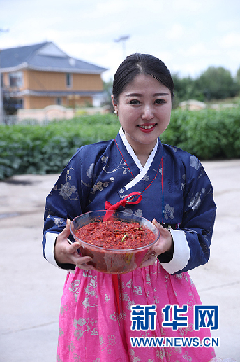 “明花辣白菜”制作者李貞淑是遼寧開源人,2011年嫁到阿榮旗新發(fā)鄉(xiāng)東光村。她的婆婆鄭明花經(jīng)營一家營業(yè)面積1400平方米,員工20人的朝鮮族特色美食餐廳,在致富同時帶動了當(dāng)?shù)芈糜螛I(yè)發(fā)展。在婆婆鄭明花指導(dǎo)下,李貞淑學(xué)習(xí)了朝鮮族美食傳統(tǒng)制作工藝,成為阿榮旗非物質(zhì)文化遺產(chǎn)傳承人。