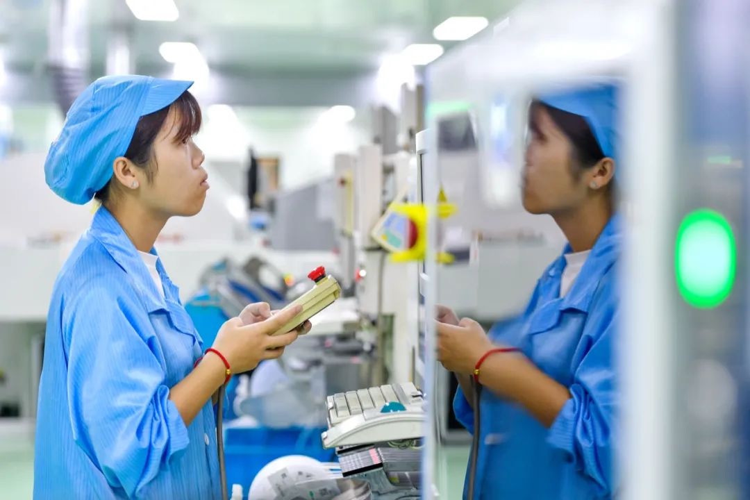 △2020年9月14日,位于浙江省湖州市長興經(jīng)濟技術(shù)開發(fā)區(qū)的一家科技公司車間,工人正在檢查貼片坐標準確性。