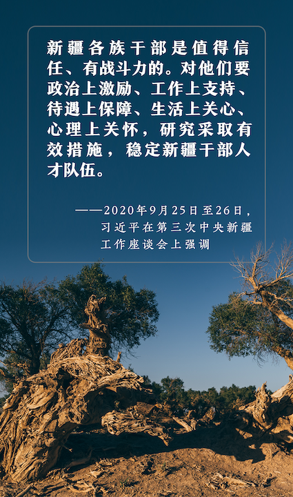 △2020年9月25日至26日,第三次中央新疆工作座談會(huì)在北京召開(kāi)。習(xí)近平出席會(huì)議并發(fā)表重要講話。