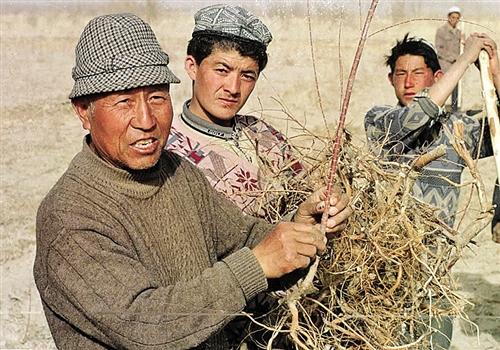在新疆防沙治沙這條艱苦的道路上,劉銘庭一干就是60余年。為了摸清沙漠“脾氣”,他曾繞著塔里木盆地轉(zhuǎn)了7圈,走了約40萬(wàn)公里。經(jīng)過(guò)反復(fù)考察研究,劉銘庭成功培育出既能防風(fēng)固沙又能創(chuàng)造經(jīng)濟(jì)效益的紅柳肉蓯蓉。通過(guò)大規(guī)模種植紅柳肉蓯蓉,新疆策勒縣、于田縣已擺脫“沙逼城下”之困,曾經(jīng)深度貧困的農(nóng)戶靠著它蓋起了新房,買(mǎi)上了汽車(chē)。