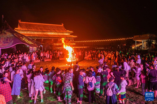 7月20日,在山東省榮成市成山頭福如東海景區(qū),游客參加篝火晚會(huì)。(新華社發(fā) 李信君 攝)