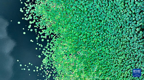 7月23日拍攝的雄安新區(qū)連片的荷花(無人機(jī)照片)。(新華社記者 落飛麟 攝)