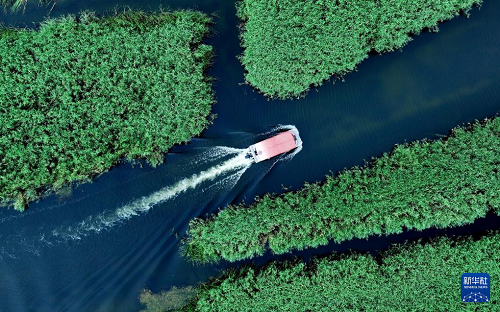 7月23日拍攝的雄安新區(qū)水上風(fēng)景(無人機(jī)照片)。(新華社記者 落飛麟 攝)
