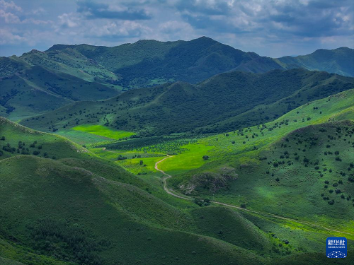 這是8月11日拍攝的內(nèi)蒙古通遼市扎魯特山地草原美景(無人機(jī)照片)。(新華社記者 連振 攝)