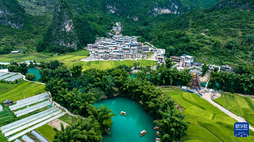 黔南布依族苗族自治州羅甸縣沫陽鎮(zhèn)大小井景區(qū)一隅(8月12日攝,無人機照片)。(新華社記者 陶亮 攝)