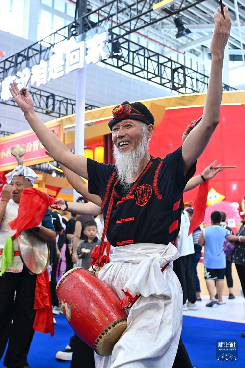 8月21日,演員在第七屆山西文化產(chǎn)業(yè)博覽交易會上表演。(新華社記者 楊晨光 攝)