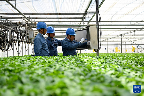 8月26日,在和縣綠緣溫室科技有限公司,國(guó)網(wǎng)馬鞍山供電公司的工作人員在檢修電力設(shè)施保障企業(yè)用電需求。(新華社記者 黃博涵 攝)