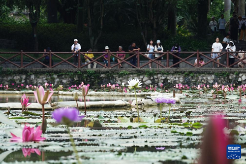 初秋時(shí)節(jié),廣西南寧市人民公園培育的900余株睡蓮陸續(xù)綻放,吸引游人前來觀賞。