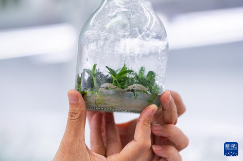 這是8月27日在廣南縣岜奪社區(qū)一處鐵皮石斛組培基地拍攝的鐵皮石斛苗。(新華社記者 高詠薇 攝)