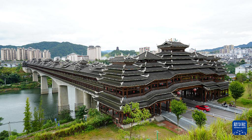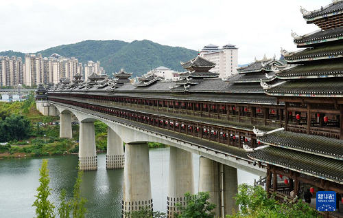 這是9月25日拍攝的三江侗族自治縣的程陽永濟橋。該橋建成于1924年,整座橋梁搭建時不用一釘一鉚,主要由木料和石料建成,橋長近80米,寬近4米,高近12米,是我國建筑藝術中的珍品。(新華社記者 張楓 攝)