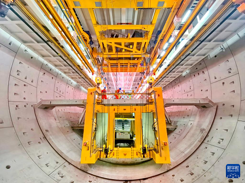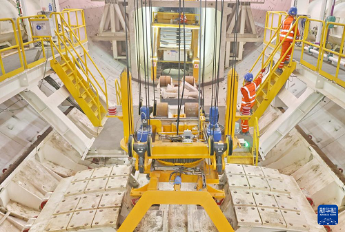 9月28日,施工人員在海太長江隧道工程施工現(xiàn)場拼裝管片。(新華社發(fā) 許叢軍 攝)