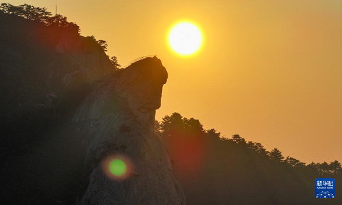 秋日清晨,初升的太陽(yáng)照在湖北省麻城市龜峰山景區(qū)的奇峰怪石上,勾勒出“龜峰旭日”的壯麗景象。