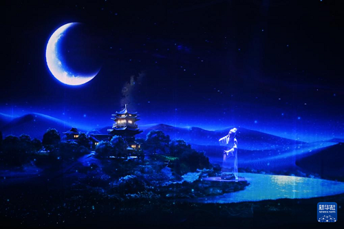 10月12日,演員在《樂動(dòng)敦煌》中表演。(新華社記者 范培珅 攝)