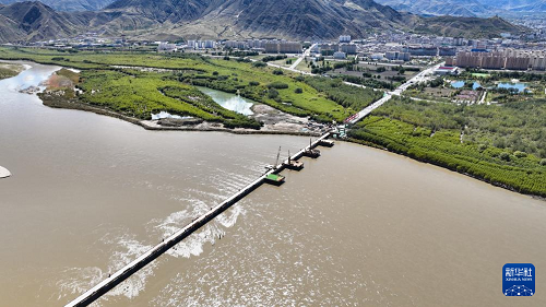 建設(shè)中的薩熱路跨江大橋(無(wú)人機(jī)照片,9月26日攝)。(新華社記者 晉美多吉 攝)