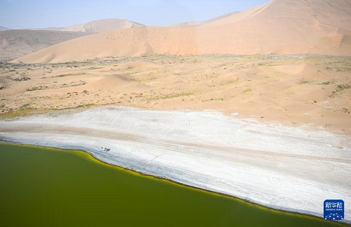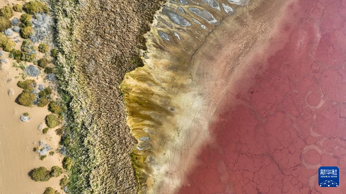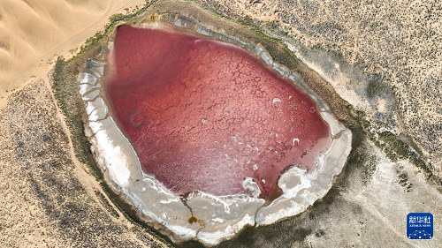 10月22日拍攝的巴丹吉林沙漠中的紅海子(無(wú)人機(jī)照片)。(新華社記者 貝赫 攝)