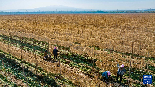 10月29日,農民在寧夏吳忠市紅寺堡區(qū)紅寺堡鎮(zhèn)弘德村晾曬蘿卜條。(新華社記者 楊植森 攝)