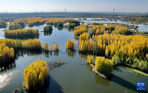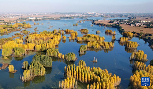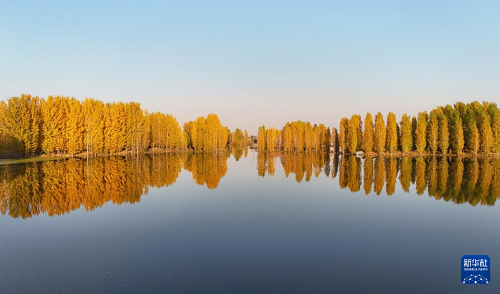 初冬時(shí)節(jié),在河北省邢臺(tái)市隆堯縣亦城村泜河沿岸,樹(shù)葉金黃,與水面、河岸相映襯,勾勒出一幅美麗和諧的自然畫(huà)卷。