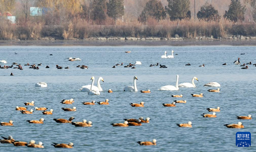 入冬以來(lái),大批候鳥陸續(xù)飛抵位于甘肅省張掖市的張掖黑河濕地國(guó)家級(jí)自然保護(hù)區(qū)高臺(tái)段休憩覓食。作為全球9條候鳥遷徙通道之一的中亞通道的重要中轉(zhuǎn)站,每年約有18萬(wàn)至25萬(wàn)只水禽在張掖黑河濕地國(guó)家級(jí)自然保護(hù)區(qū)集結(jié)、停歇。