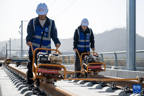 11月27日,在湖北十堰神定河特大橋上,西安至十堰高速鐵路(簡(jiǎn)稱“西十高鐵”)全線最后一對(duì)長(zhǎng)鋼軌鋪設(shè)落地,標(biāo)志著西十高鐵全線鋪軌工程順利完工,為后續(xù)聯(lián)調(diào)聯(lián)試奠定基礎(chǔ)。