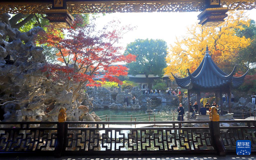 12月8日,游客在江蘇蘇州獅子林觀光游覽。(新華社發(fā) 王建康 攝)