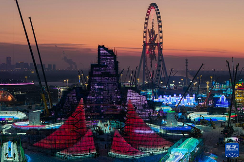 | 第二十七屆哈爾濱冰雪大世界主塔“冰燈啟夢(mèng)”封頂 |