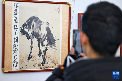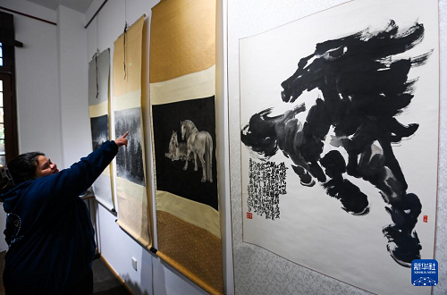 12月29日,參觀者在天津古文化街參觀“喜迎馬年,五代畫馬人馬畫藝術(shù)展”。(新華社記者 趙子碩 攝)