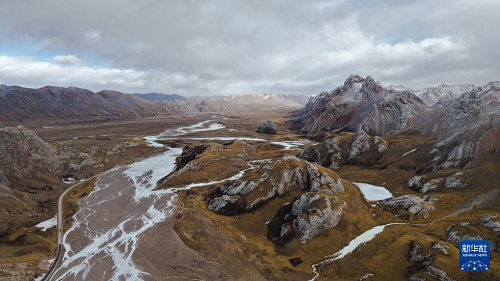 這是1月30日在青海省玉樹藏族自治州雜多縣境內(nèi)拍攝的冬景風(fēng)光(無人機照片)。(新華社記者 齊芷玥 攝)