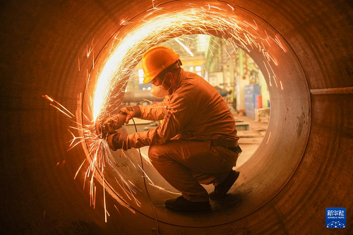 2月24日,在四川眉山天府新區(qū)中建鋼構(gòu)四川有限公司車間,工人趕制鋼結(jié)構(gòu)產(chǎn)品。(新華社發(fā) 翁光建 攝)