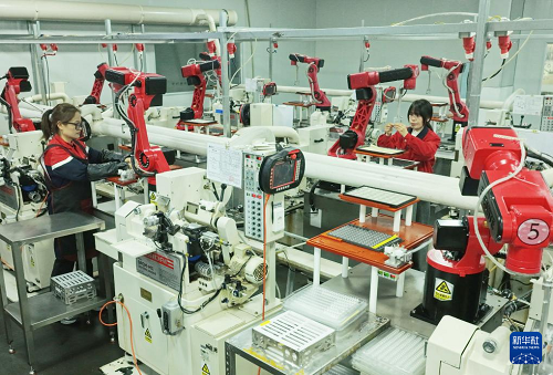 2月24日,工人在位于湖北省秭歸縣的宜昌旌拓光學(xué)有限公司智能生產(chǎn)線上忙碌。(新華社發(fā) 王罡 攝)