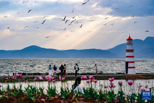 春日暖陽(yáng)下,昆明滇池碧波蕩漾,遠(yuǎn)山如黛,紅嘴鷗翩躚起舞。游人沿岸漫步、駐足拍攝,共繪出一幅生動(dòng)宜人的春游畫(huà)卷。
