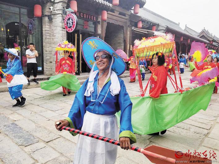 漫步在忻州古城街頭,一個個具有濃厚地方文化特色的表演節(jié)目,如五臺秧歌、巾幗鼓舞、五臺山佛樂、旱船表演等輪番上演,讓游忻州古城的市民和外地游客深深領略到了五臺的風土人情,近距離感受到了五臺縣非物質文化遺產(chǎn)的魅力和特色文化旅游資源的風采。