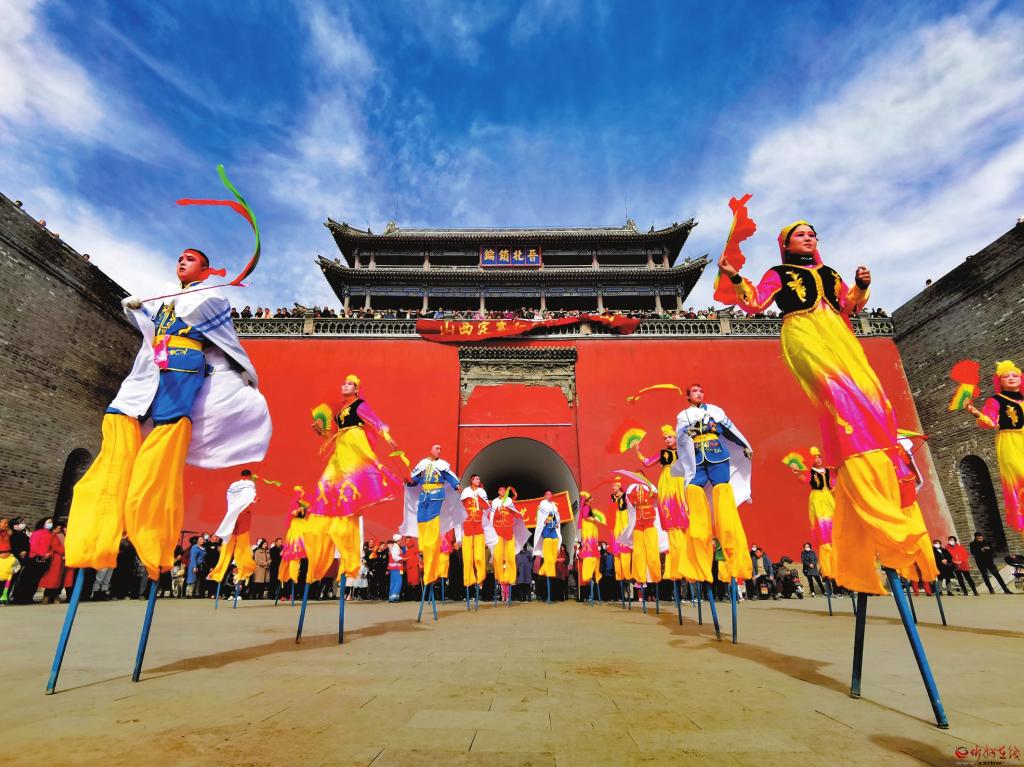 定襄社火和各類傳統(tǒng)民俗活動歷史悠久,各類極具地方特色的民俗文化活動觀賞性很強(qiáng),二兔藝術(shù)團(tuán)盡情舞動,表情歡悅;老干部藝術(shù)團(tuán)鶴發(fā)童顏,精神抖擻;夢之藍(lán)旗袍隊舉止高雅,體態(tài)大方;紅燈籠高蹺隊腳踏雙木,輕松自如……有趣的互動,讓大家樂在其中。喜慶的樂曲,歡快的表演,充分展現(xiàn)了人民群眾的新生活、新風(fēng)尚、新面貌,迎來觀眾一片喝彩聲,讓游客感受到了定襄的民俗文化魅力。(張存良 攝)