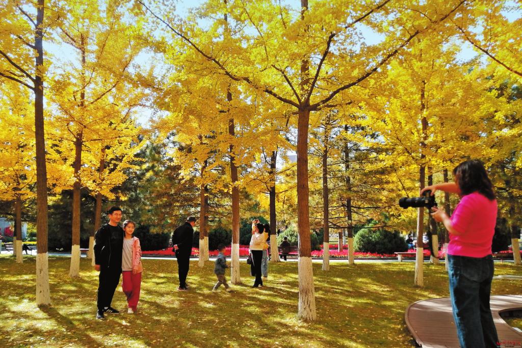 葉落知秋,霜落知寒,但屬于銀杏的時節(jié)才剛剛開始。忻州城區(qū)人民公園絢爛金黃的銀杏把秋日氣息渲染到了極致,使原本蕭瑟的秋季充滿融融暖意。滿樹的金黃,一片片、一簇簇,層疊排開、錯落有致,一陣微風(fēng)吹過,扇形葉子飄灑而下,如漫天飛舞的金色蝴蝶,在空中翻轉(zhuǎn),落成一地金黃,吸引無數(shù)游人打卡拍照、流連忘返。(本報記者 李濤 攝)