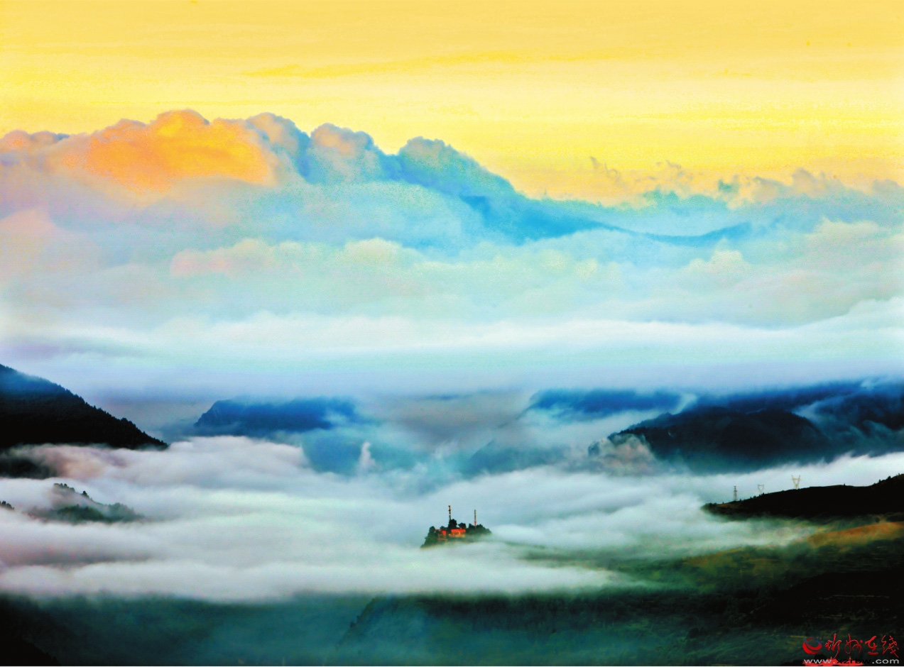 站在高山之巔,徐徐浮動、漫無邊際的云遙掛在山水間,柔潤似水、渾然天成,變幻莫測、瑰麗壯觀。
