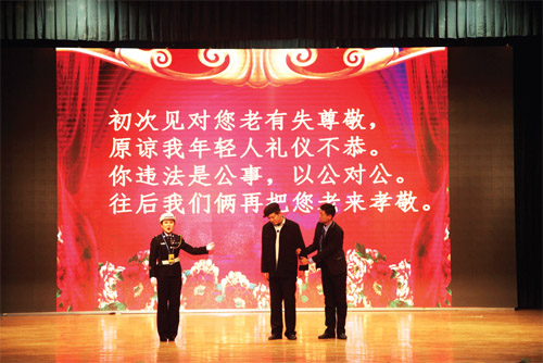 1月27日至29日,偏關(guān)縣公安局交警大隊(duì)交通安全文藝宣傳隊(duì)在隊(duì)長們的帶領(lǐng)下,先后走進(jìn)市實(shí)驗(yàn)中學(xué)、市客運(yùn)中心、國家電網(wǎng)忻州供電分公司進(jìn)行了三場演出,用自編自導(dǎo)自演、群眾喜聞樂見的“漫翰調(diào)”、“二人臺(tái)”、北路梆子、民歌等一系列極具地域文化特色的地方小戲、說唱歌舞等曲藝形式進(jìn)行宣傳演出,贏得滿堂喝彩,場場掌聲雷動(dòng)。作為春節(jié)回家路上的一道文化盛宴,這次春節(jié)前的平安出行警示教育“送安全下鄉(xiāng)”巡演是我市公安交警精心策劃、編排的春運(yùn)交通安全宣傳行動(dòng)之一。28日,市客運(yùn)中心人頭攢動(dòng),熙熙攘攘,大廳外懸掛的橫幅標(biāo)語“守護(hù)您的平安出行,保障道路安全暢通是每一位交警的神圣職責(zé)!”格外醒目。候車大廳里,暖意融融,市公安局交警支隊(duì)組織的春運(yùn)交通安全文藝演出正在進(jìn)行,交警版的民間小調(diào)《拜大年》、小品《警鐘聲聲》、雙簧《二愣子》等節(jié)目令人賞心悅目、捧腹不止。在歡笑之余,提醒和教育廣大群眾自覺抵制不文明、不安全交通行為,觀看演出的旅客和客車司機(jī)紛紛感慨,這樣的宣傳教育生動(dòng)形象,人人愛看且耐人尋味,警示作用很大。
