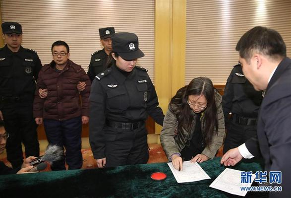 2月6日,在北京首都機場,檢察官向“百名紅通”嫌犯付耀波(右五)、張清曌(右二)宣讀相關法律文書。當日,在中央追逃辦統(tǒng)一部署下,在外交部、公安部及我駐巴巴多斯、格林納達等駐外使館的大力協(xié)助下,遼寧省追逃辦組織協(xié)調(diào)檢察、公安等部門,成功將遠逃至加勒比海島國圣文森特和格林納丁斯的“百名紅通”第39號嫌犯付耀波、第41號嫌犯張清曌同時抓獲歸案。新華社記者殷剛攝
